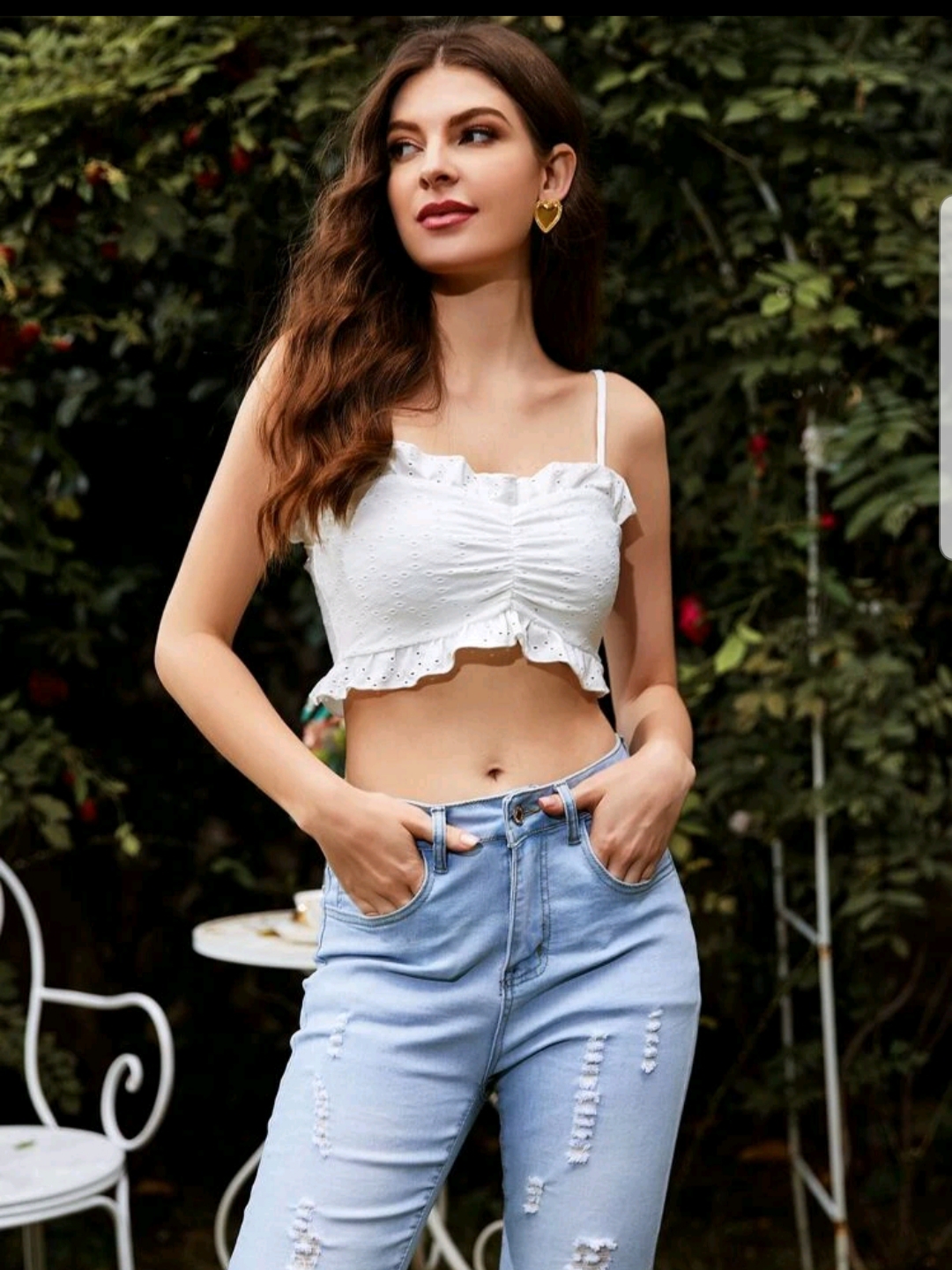 Ruffle Trim Ruched Schiffy Cami top