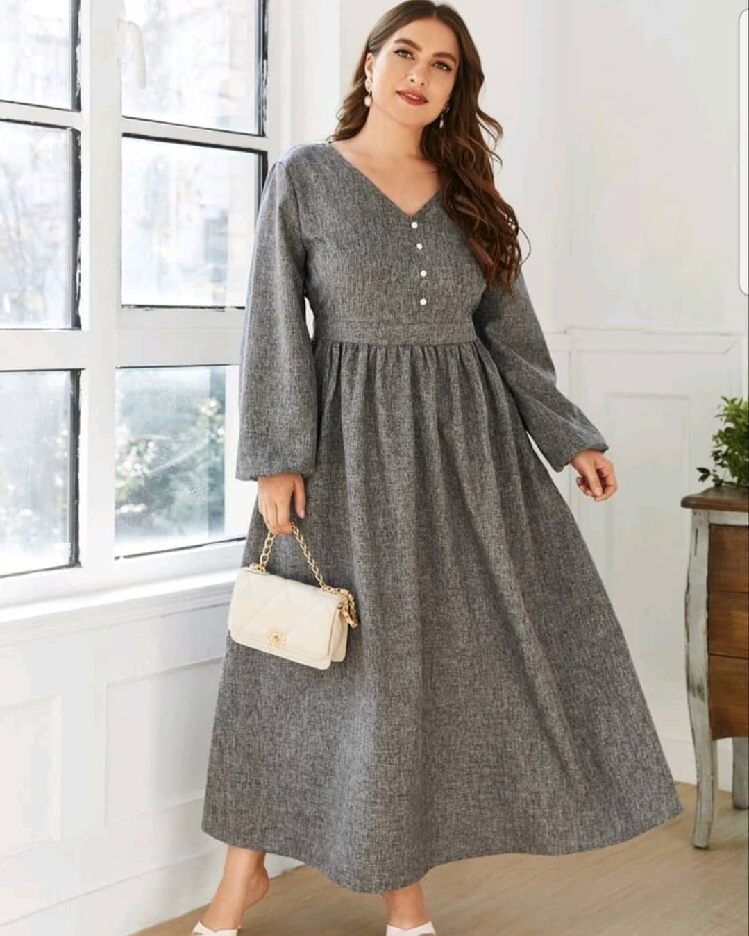 V-Neck bishop sleeve A line dress