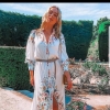 Mock neck Lantern sleeve belted Floral dress