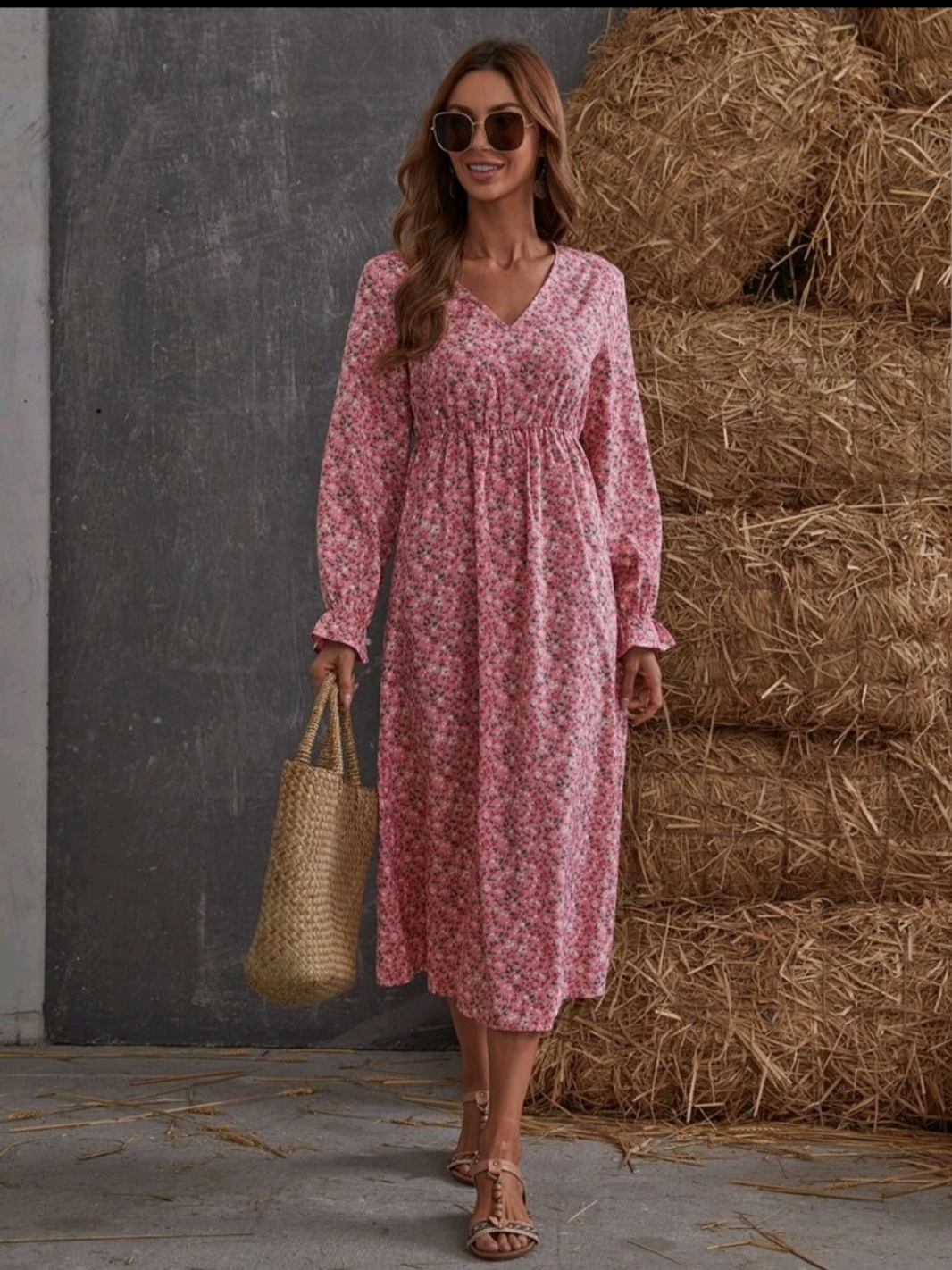 Ditsy Floral Print Flounce Sleeve Dress