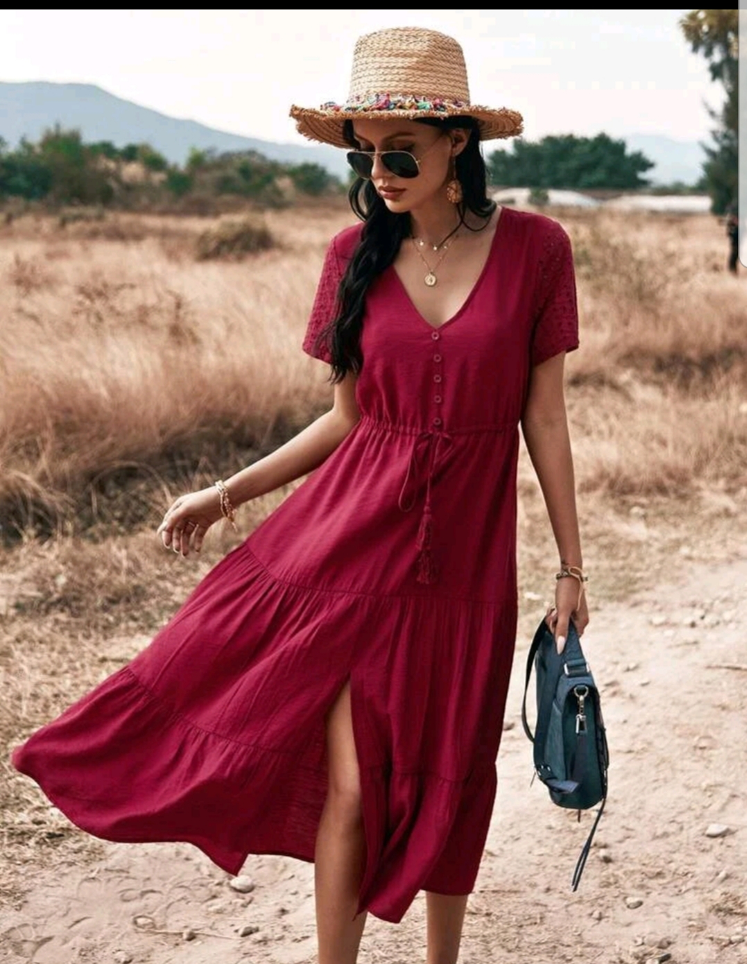 Drawstring Waist Split Hem Dress