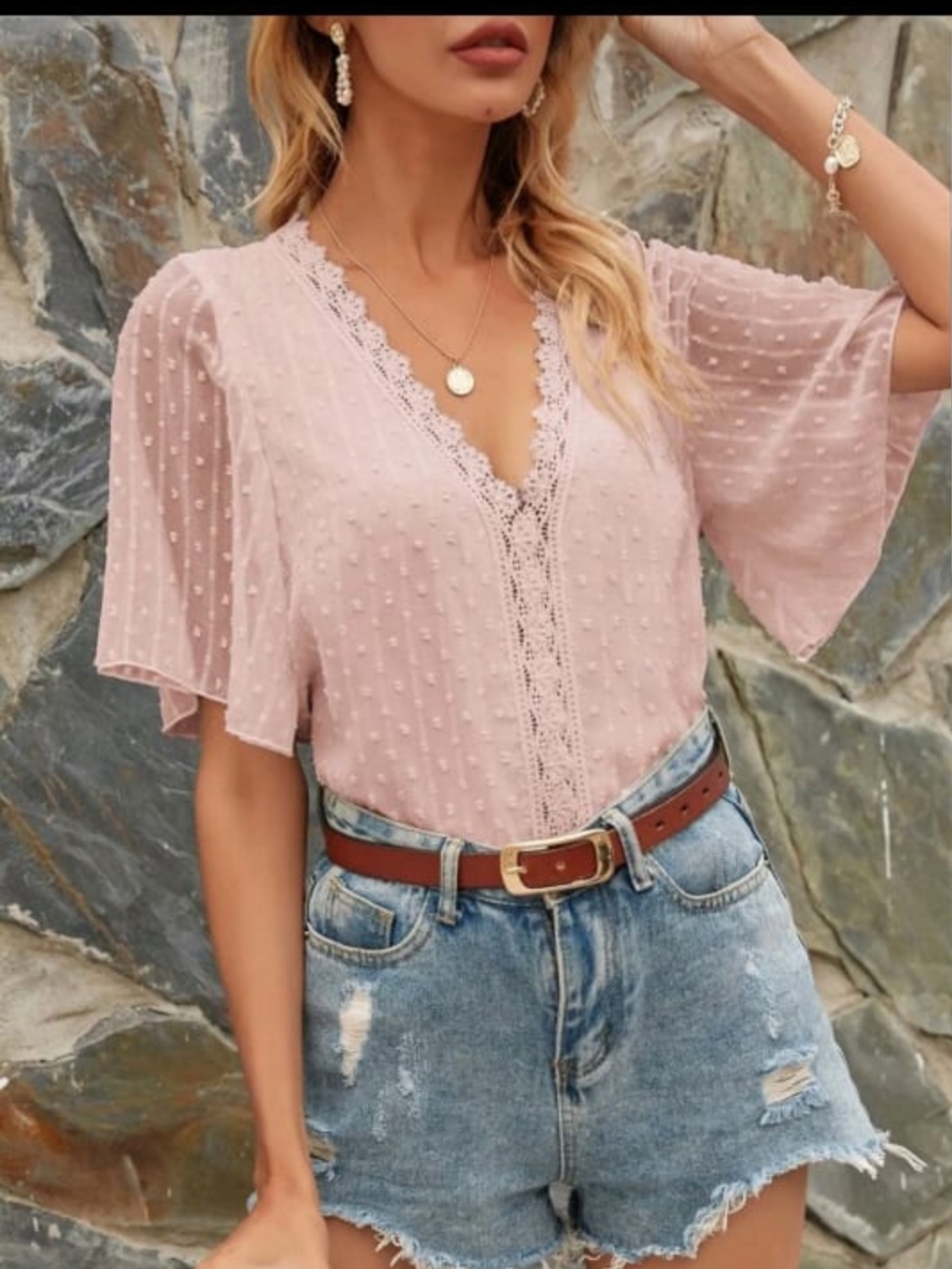Swiss dot contrast Lace blouse