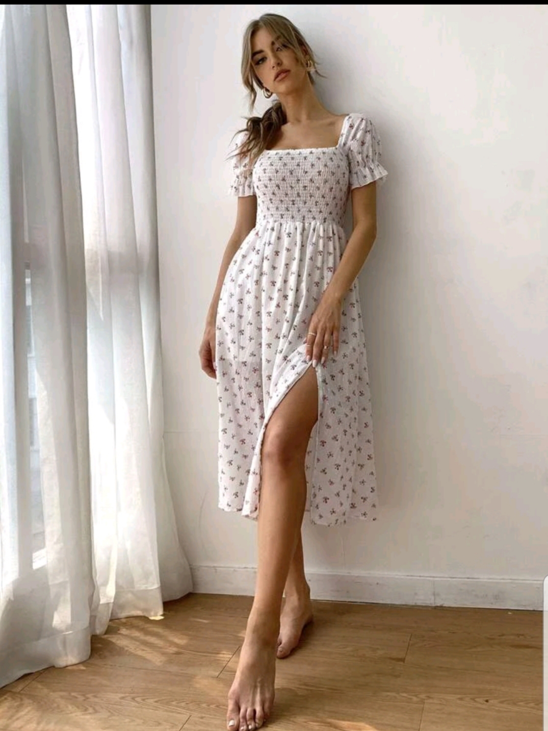 Disty Floral swiss dot split hem dress