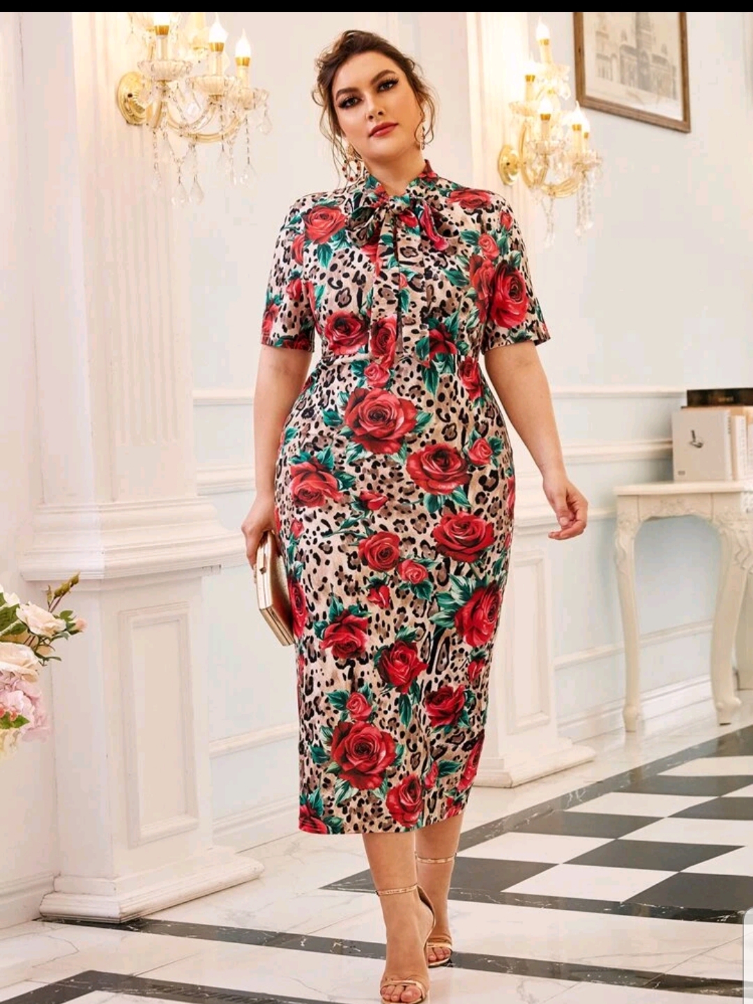 Tie Neck split hem printed dress