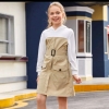Flap Pocket belted colorblock hooded dress