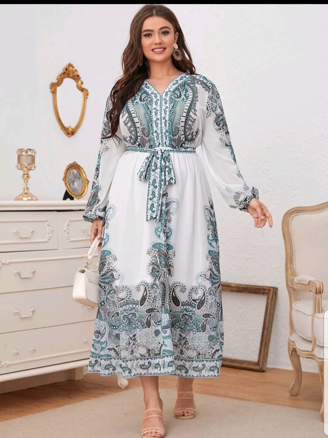 Paisley Print belted Chiffon dress