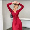 Drawstring Ruched split Thigh dress