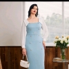Colourblock double breasted split back dress