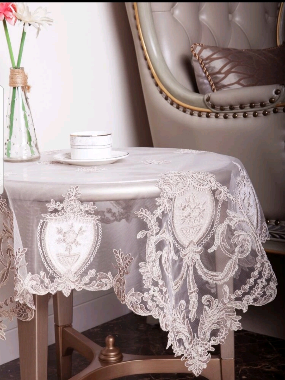 Flower Embroidery lace tablecloth ( one size)