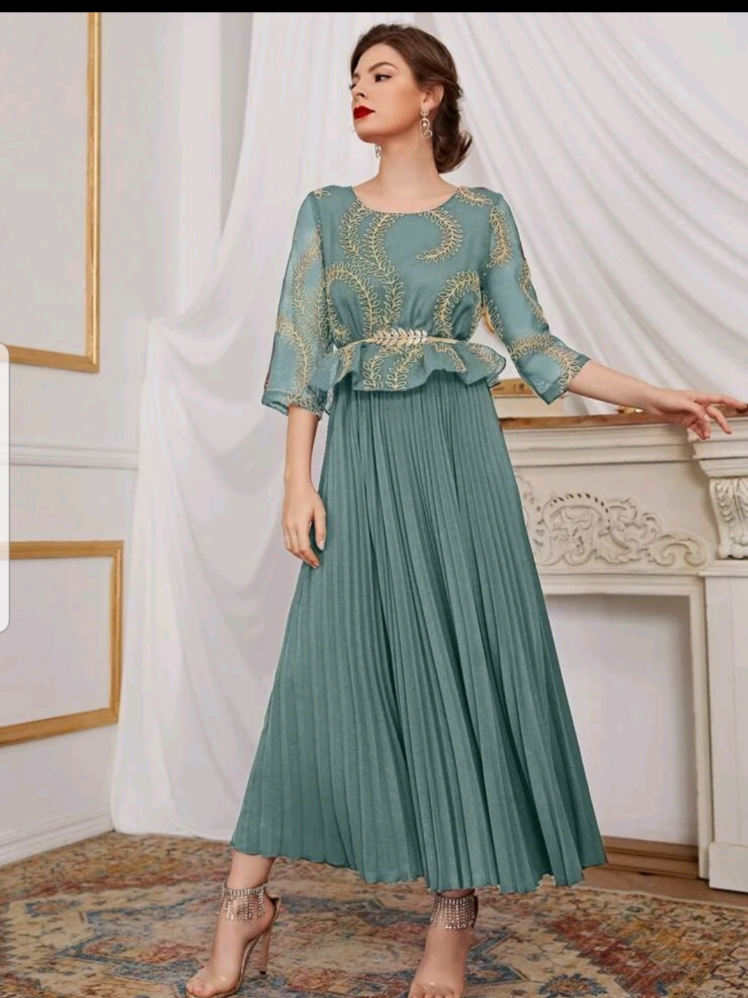 Embroidery Pleated dress without belt