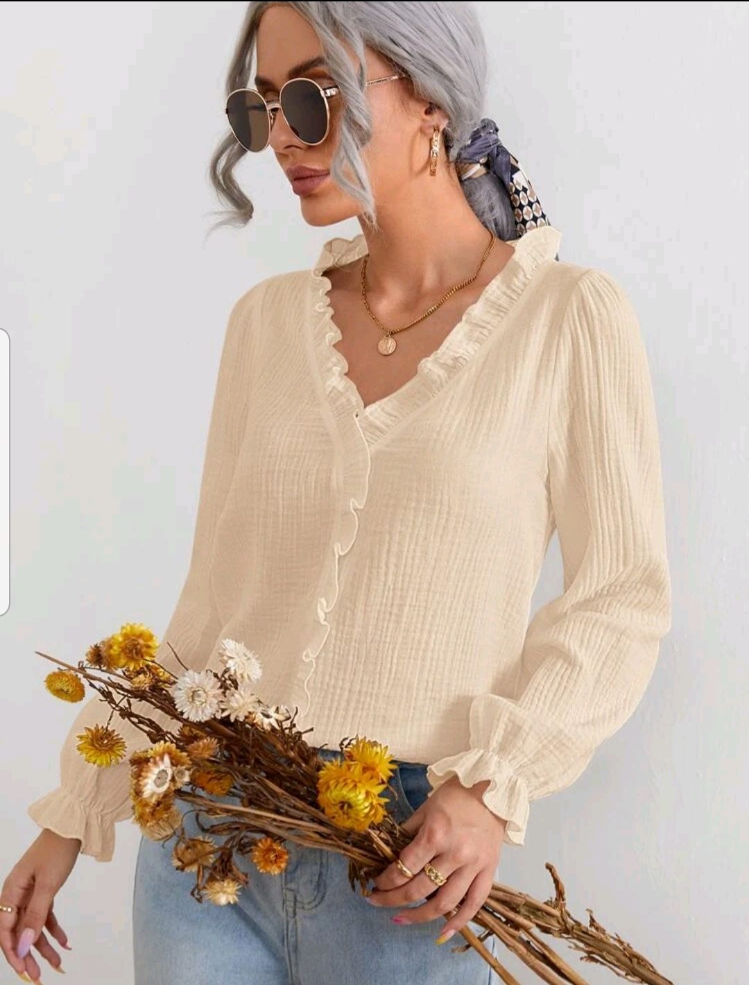 Solid Ruffle Trim blouse