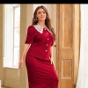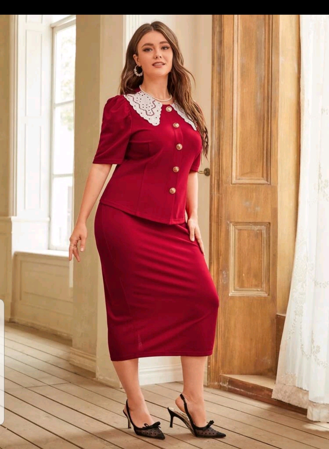 Contrast collar Puff sleeve top & pencil skirt