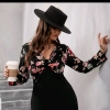 Floral Print twist plunging Neck dress