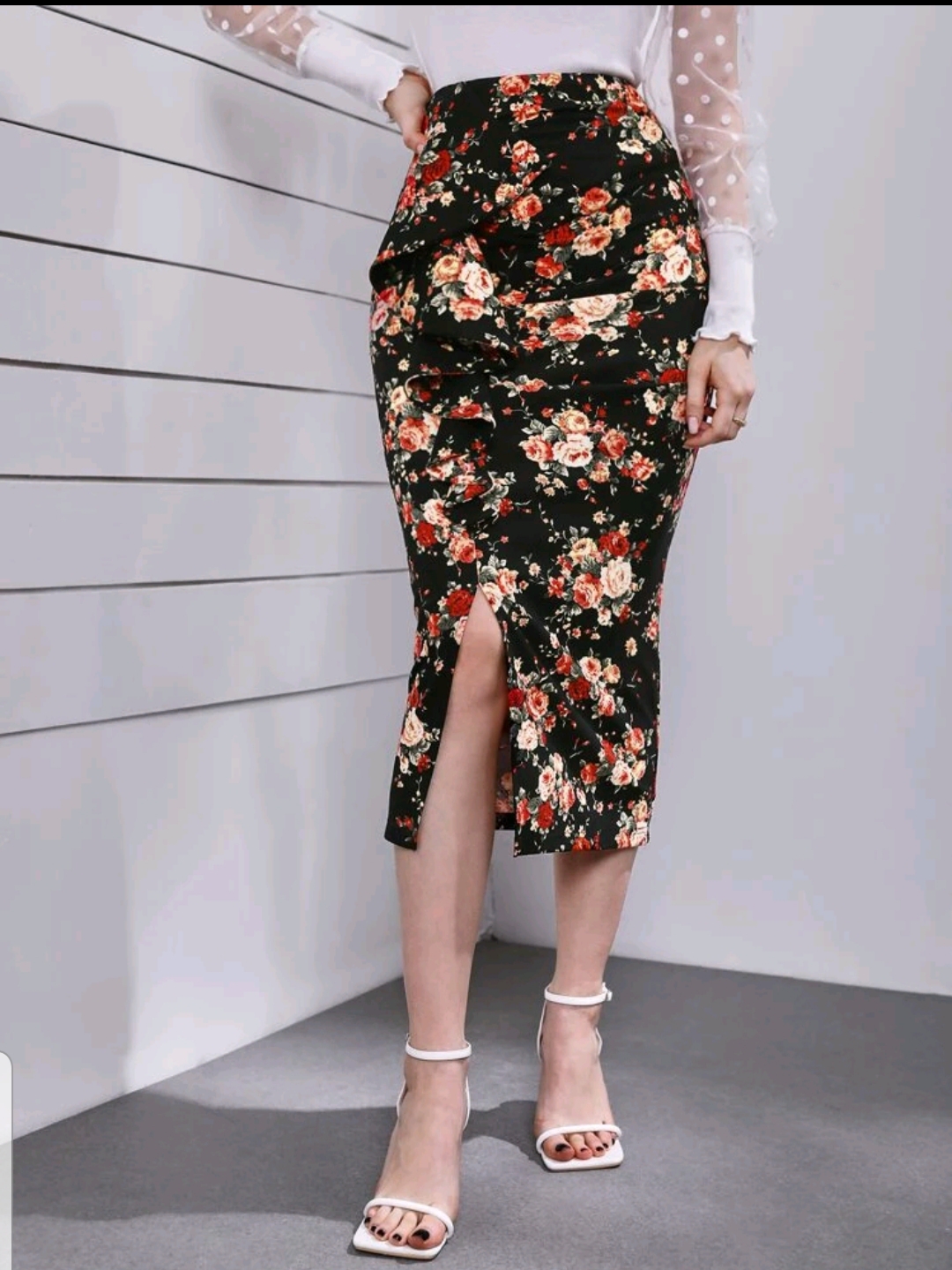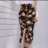 Ruffle Trim Floral Print split hem skirt