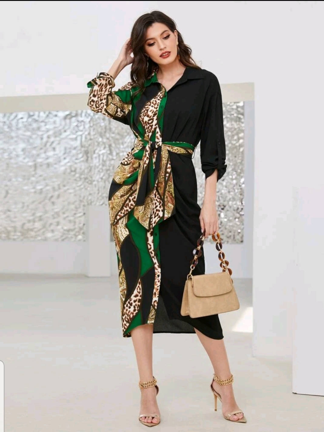 Patchwork Print belted dress