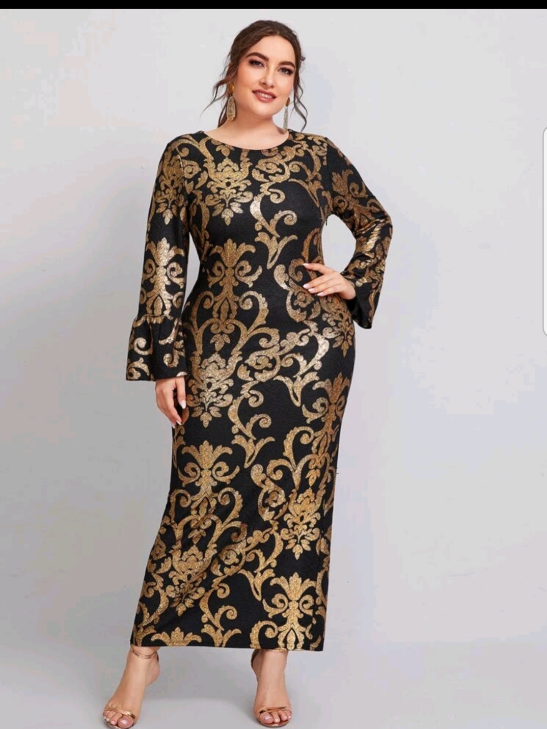 Flounce sleeve Baroque Print fitted dress
