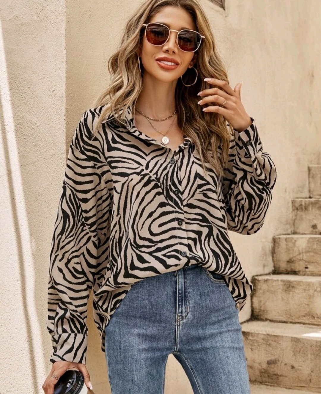 Zebra stripe drop shoulder shirt