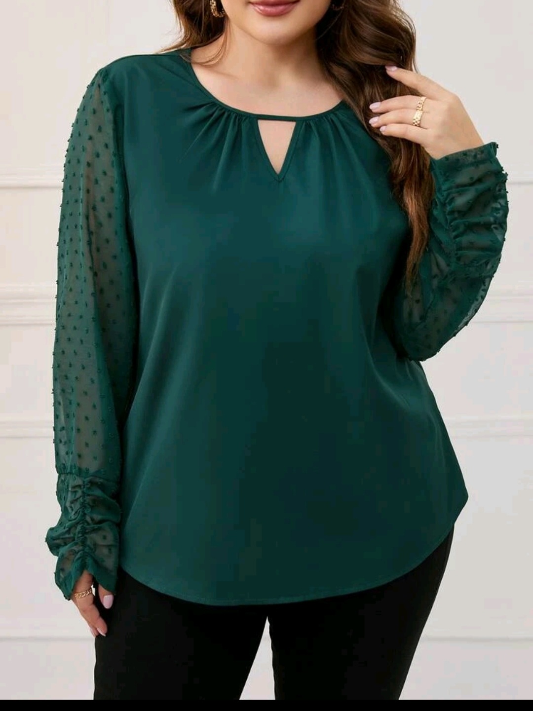 Swiss dot flounce sleeve blouse