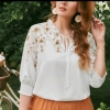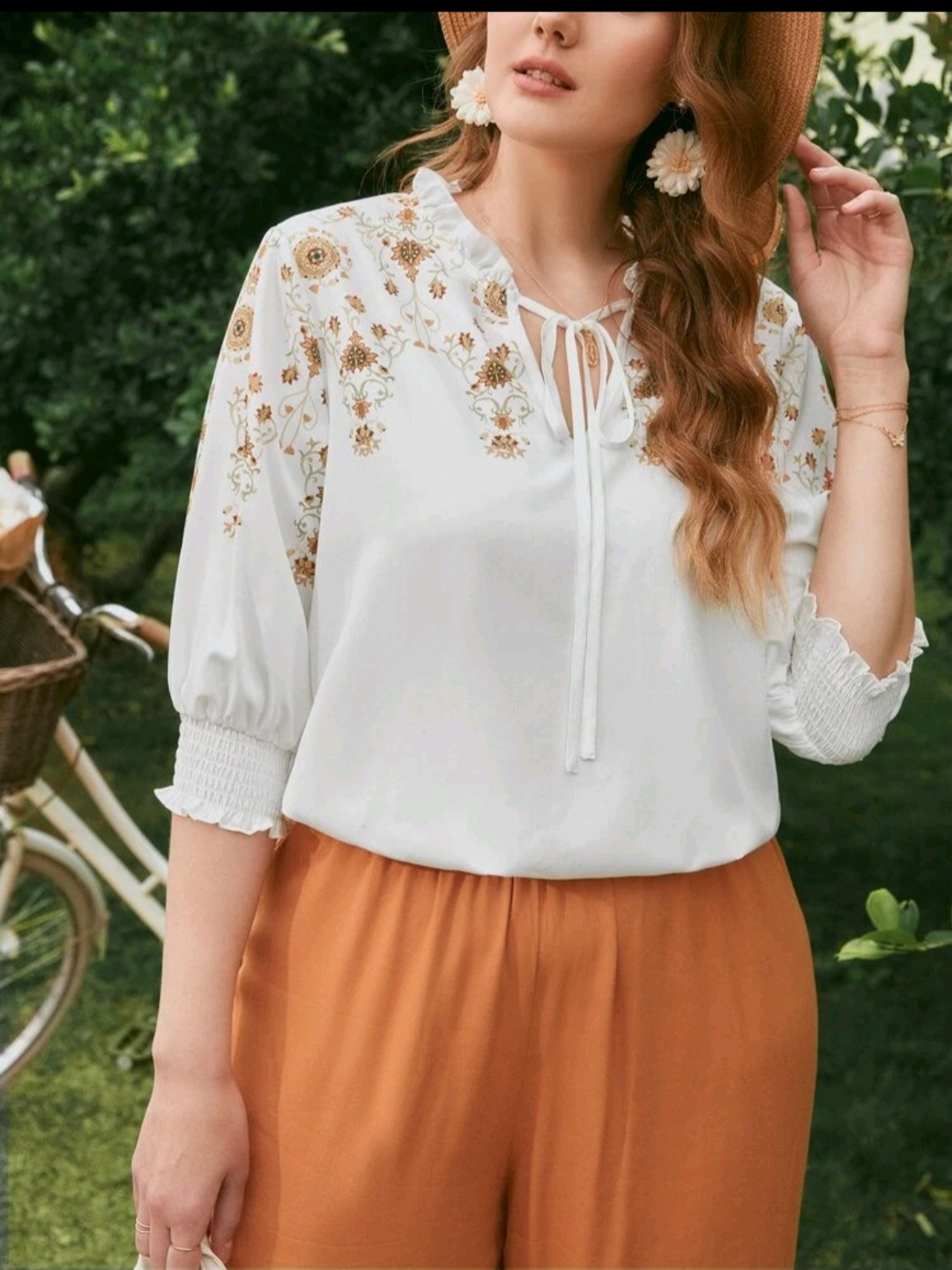 Floral print tie neck blouse