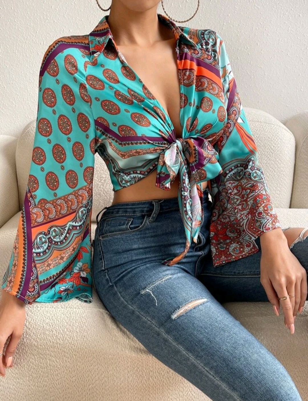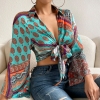 Scaff print crop satin beach shirt