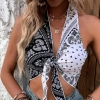 Paisley print tie front halter top