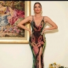 Graphic print split thigh Sequin dress